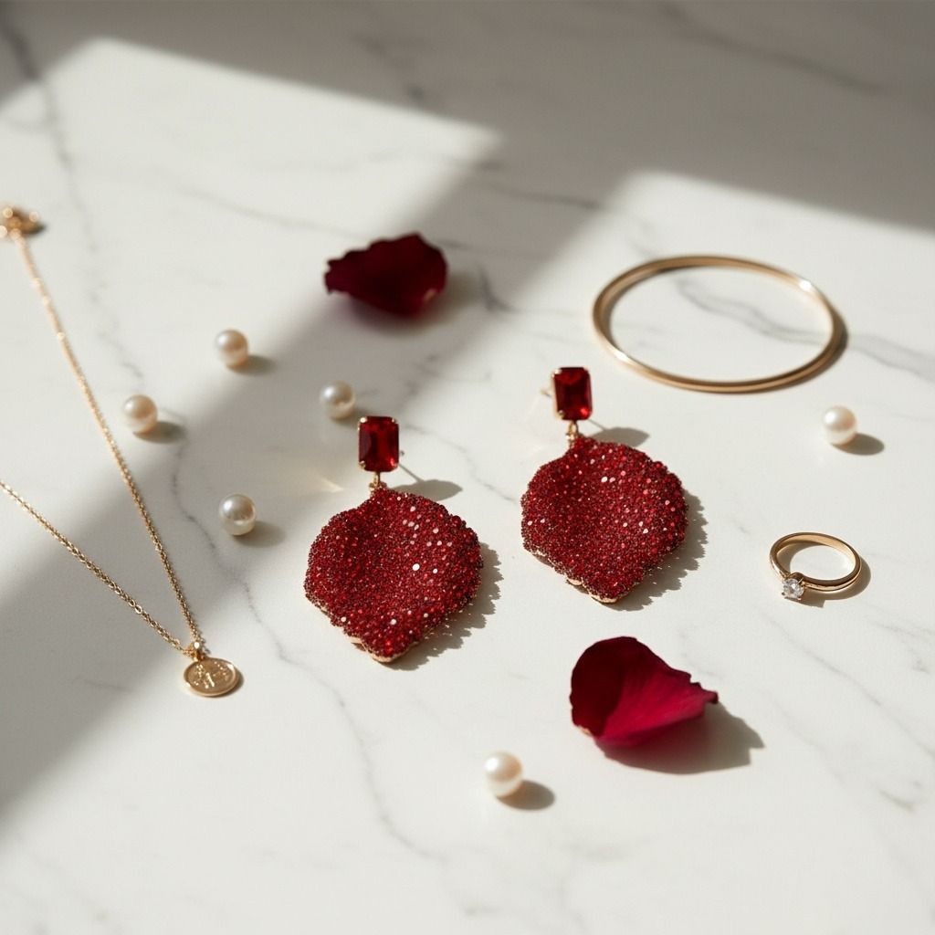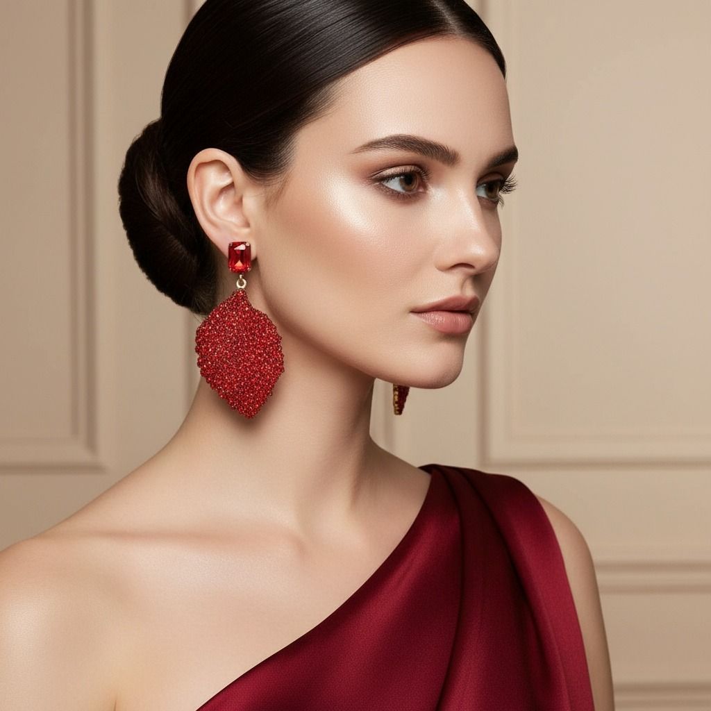 Women's Drop Earrings. Big Sparkle Energy Statement Earrings. Red Radiant Crystal Set in Gold Metal Stud Earrings Featuring Drop Natural...