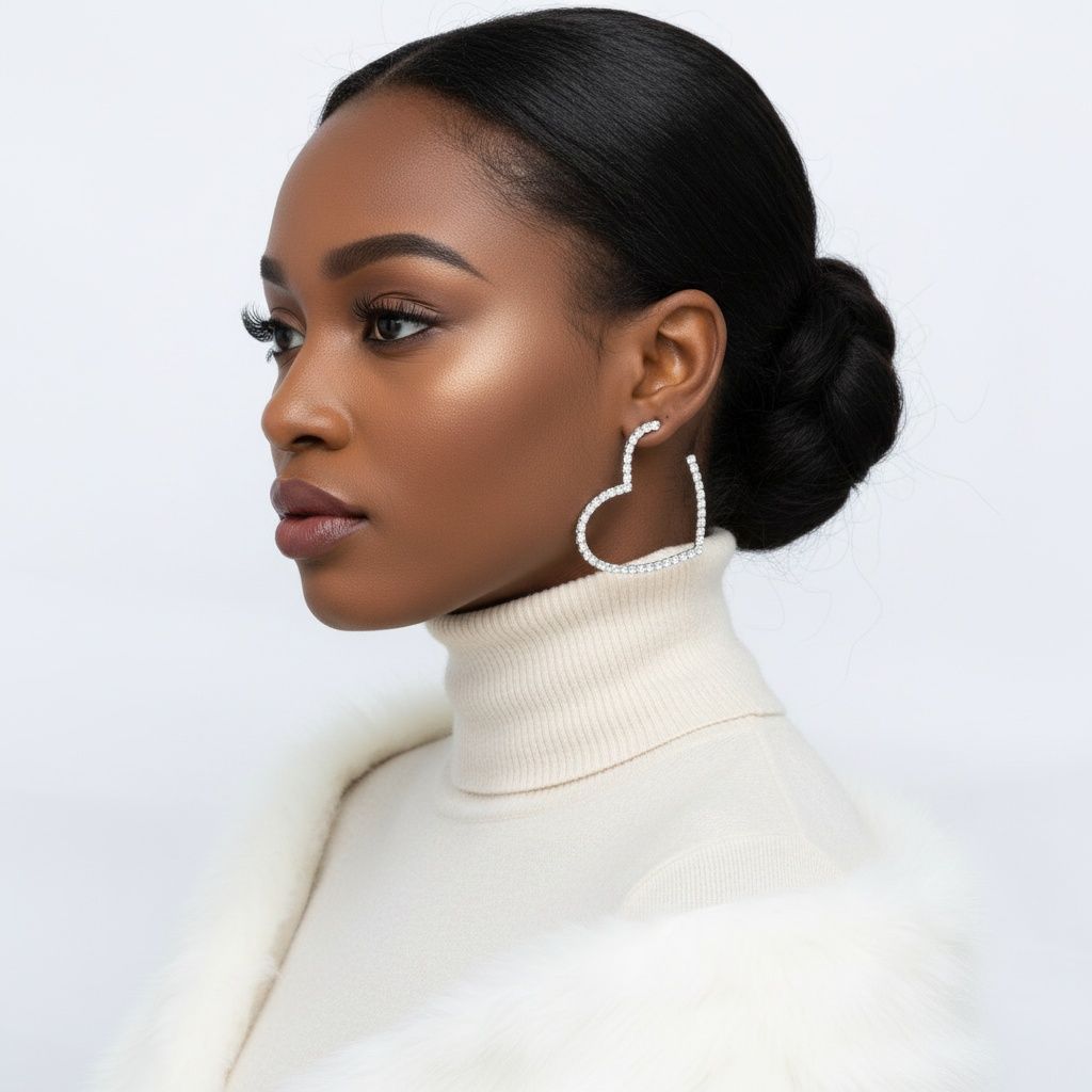 Women's Hoop Earrings. Sweet Sparkle Silver Metal Heart Shaped Open Hoop Earrings Featuring Clear Pave Rhinestone Detailing. Post Backing.