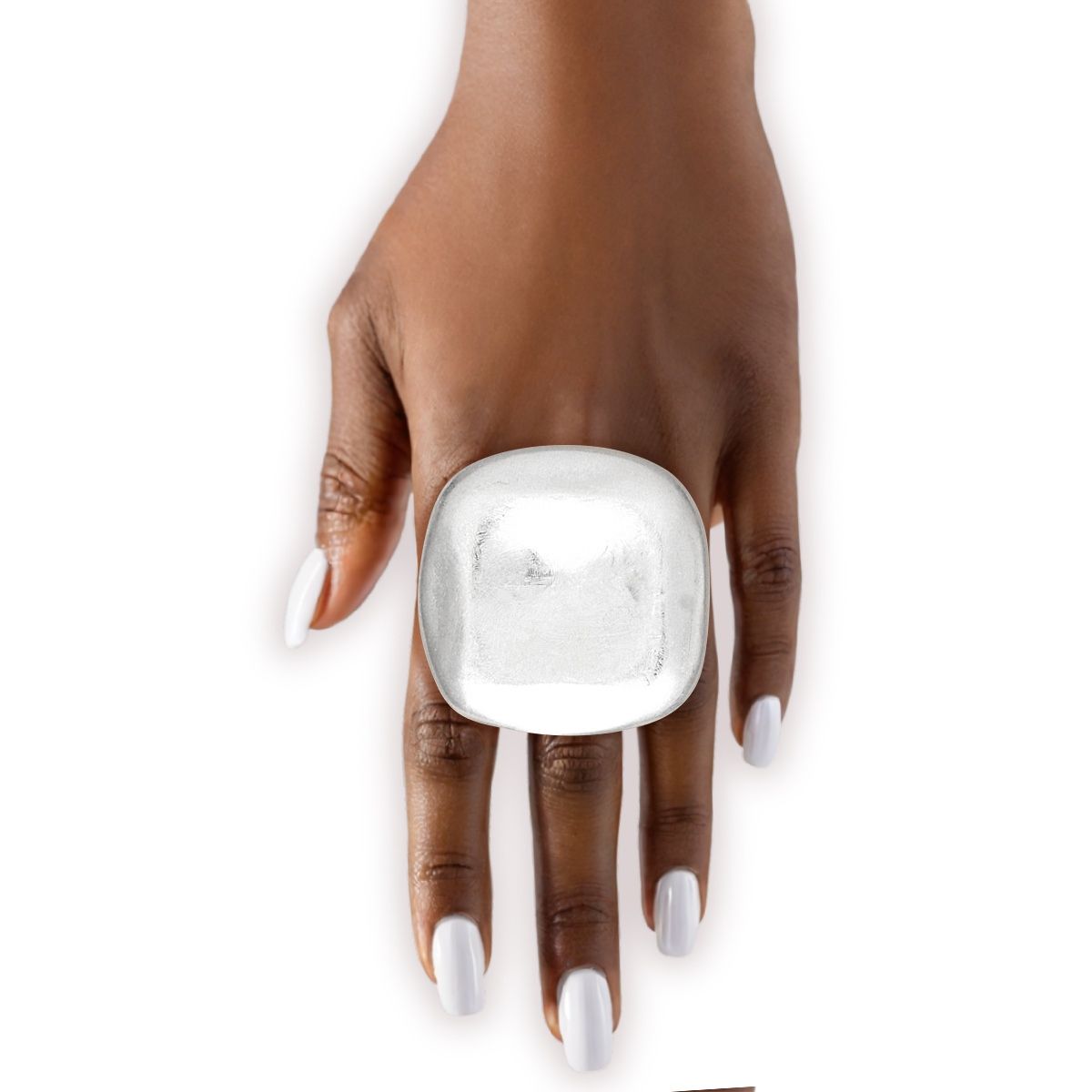 Women's Large Statement Ring. XL Modern Tribal Matte Silver Stretch Ring Featuring Industrial Geometric Square Concave Design and Brushed Metal...