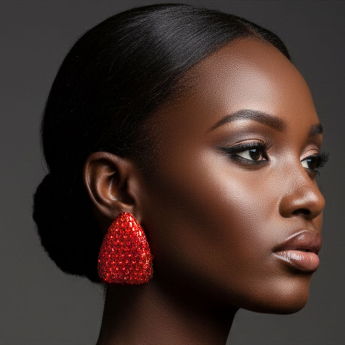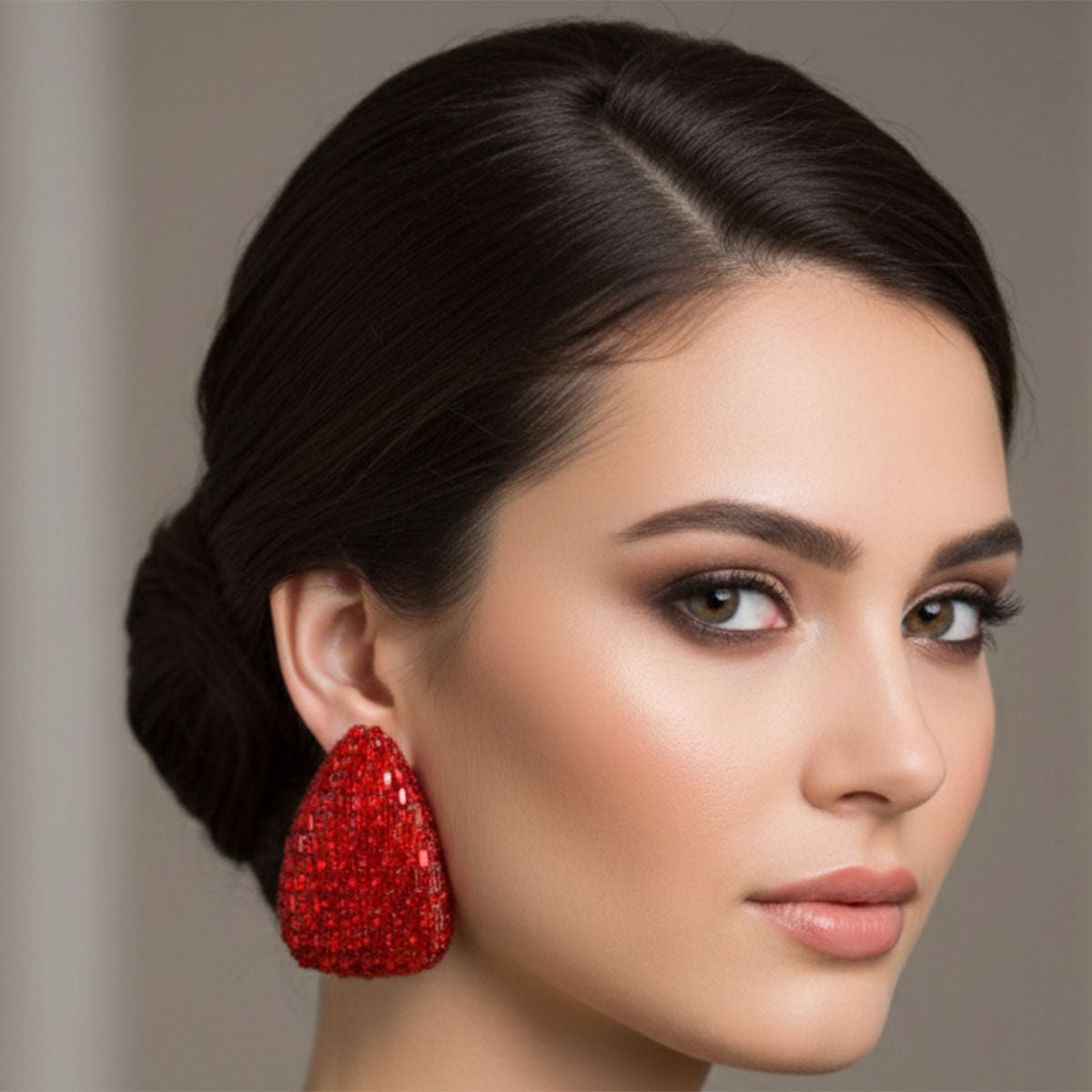 Stud Oversized Domed Teardrop Red Stone Earrings